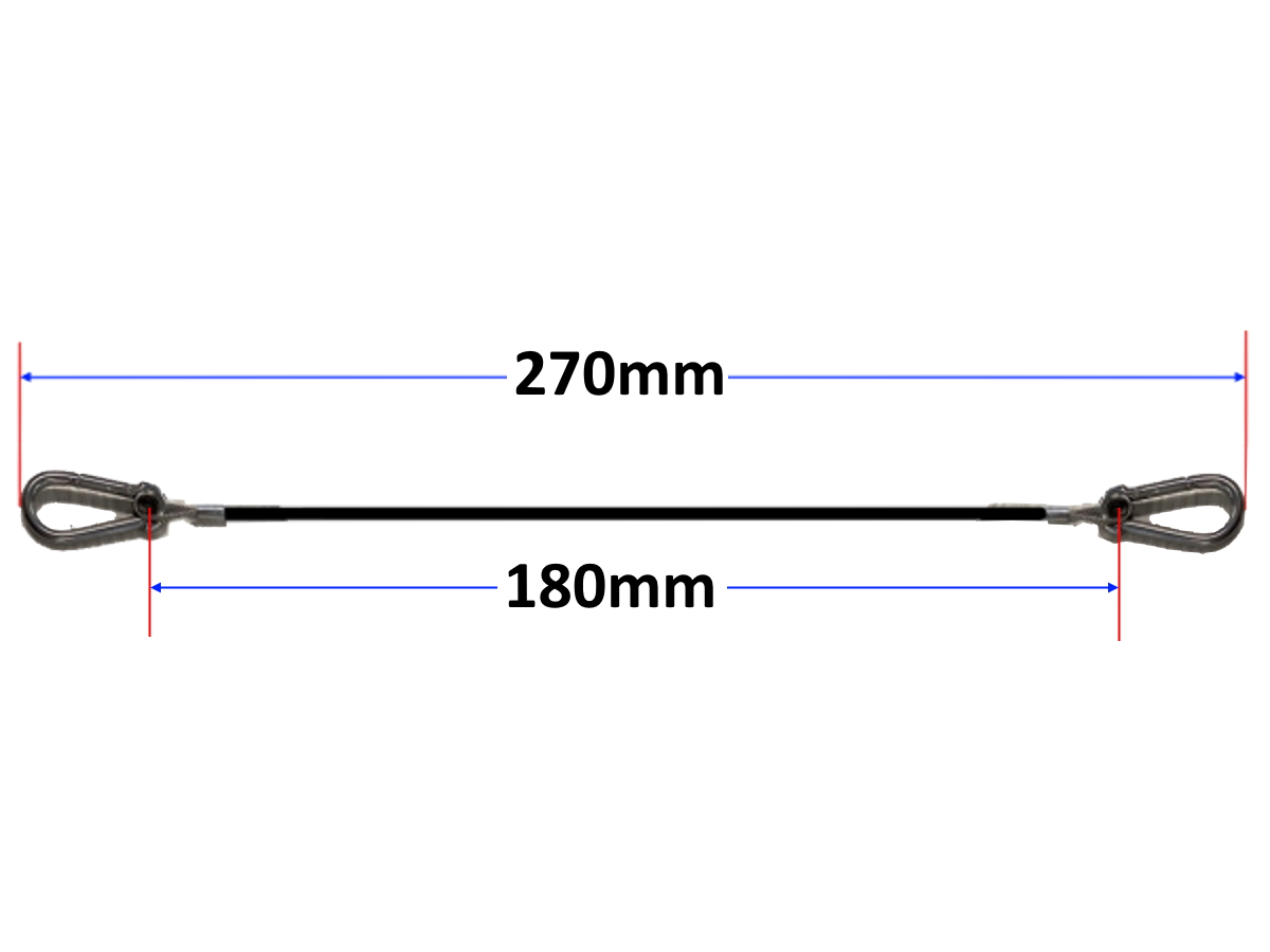 Length of Wire: 180mm measures from ‘center of eye’ to ‘center of eye’. 290mm is the distance from ‘tip to tip’. Use combinations of lanyards to get the desired total length. For example, combine two single 500mm lengths. The effective length will be 1000mm. The Safety Hooks at each end connect the wire from the object to the anchor. As a result, both Professionals and DIY guys choose this Safety Wire assembly for their projects.