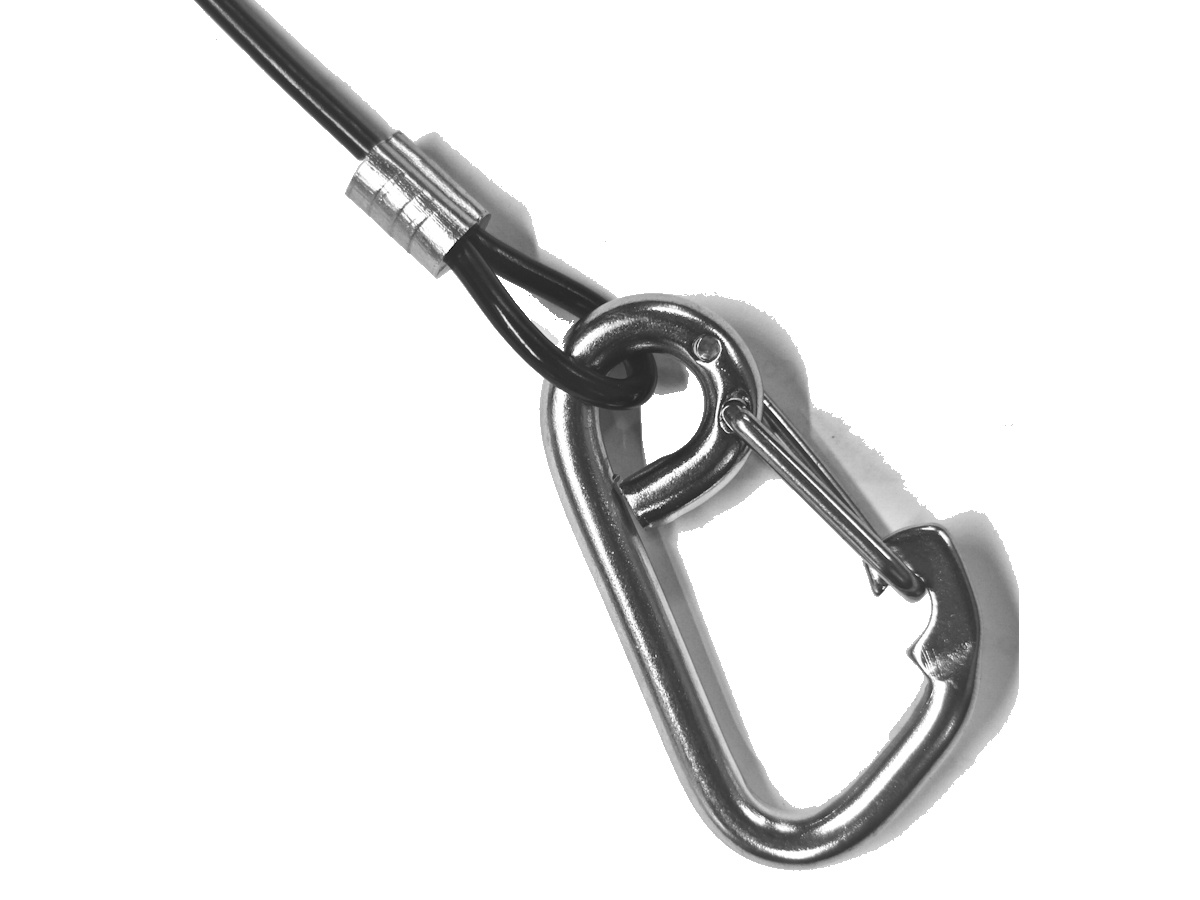 Usage: This flexible safety wire fastens easily, bends readily, and resists kinking. The wire will not stretch, and units can be combined to form a longer effective length. The 6.0mm G316 Stainless Steel Asymmetrical Safety Hook with an eye fastens in three ways. Firstly, to itself for a loop. Secondly – onto the wire itself for adjustable security. Thirdly – from the object to the anchor point for a standard installation. The Stainless Steel Safety Wire is best for installations in aggressive or corrosive environments.